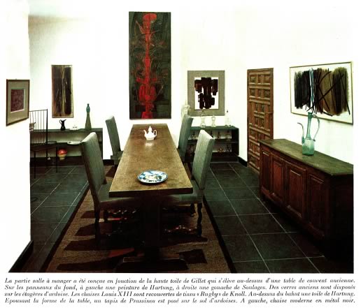 Des relations publiques par les diners de vernissage mais aussi par des actions ponctuelles dont les photos de l’appartement de Myriam Prévôt photographié dans L’œil de décembre1958 avec un tableau de Gillet.