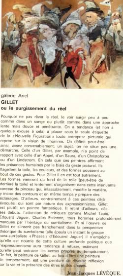 1° article qui cite Gillet dans la presse à l'occasion de l'exposition Galerie Craven en 1953