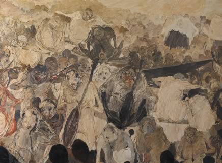 Guignol’s band présente 28 œuvres, peintes entre 1951 et 1997 et rarement exposées, dont Un Tas de gens (1966), tableau important prêté par le Musée d’Art moderne de Paris.